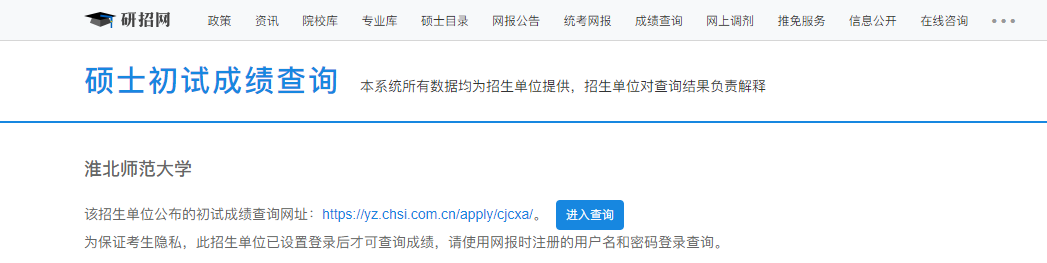 2021考研初試成績:淮北師范大學考研初試成績查詢?nèi)肟陂_啟!初試成績已公布!