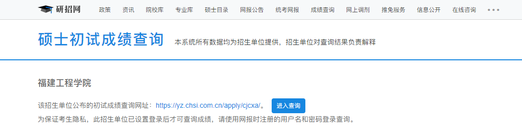 福建工程學(xué)院考研初試成績(jī)查詢?nèi)肟?/span>https://yz.chsi.com.cn/apply/cjcx/sch/10388.dhtml