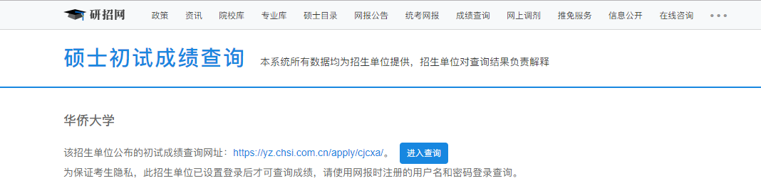 2021考研初試成績:華僑大學(xué)考研初試成績查詢?nèi)肟陂_啟!初試成績已公布!