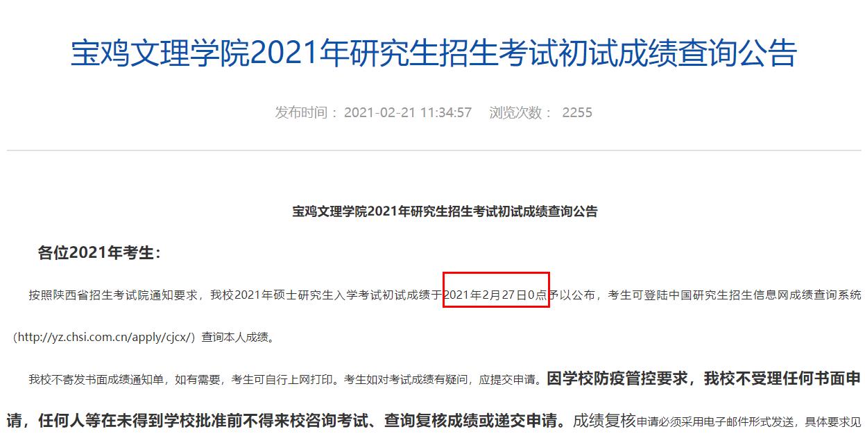 2021考研初試成績(jī):寶雞文理學(xué)院考研初試成績(jī)查詢?nèi)肟陂_(kāi)啟!初試成績(jī)已公布!