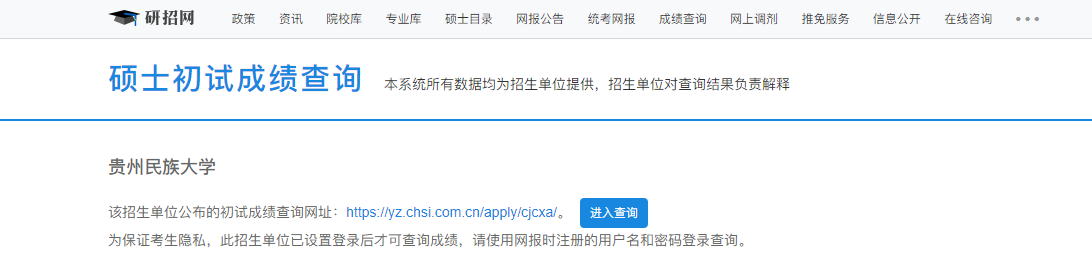 2021考研初試成績:貴州民族大學考研初試成績查詢?nèi)肟陂_啟!初試成績已公布!