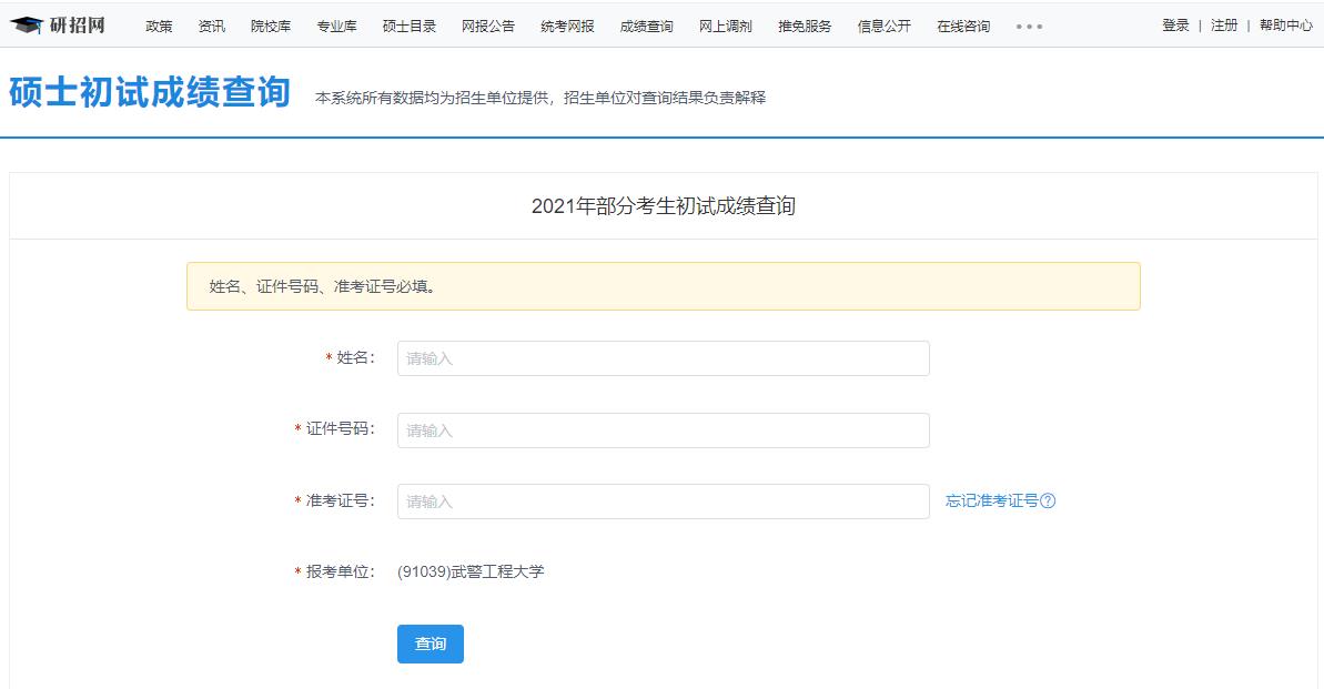 2021考研初試成績(jī):武警工程大學(xué)考研初試成績(jī)查詢?nèi)肟陂_(kāi)啟!初試成績(jī)已公布!