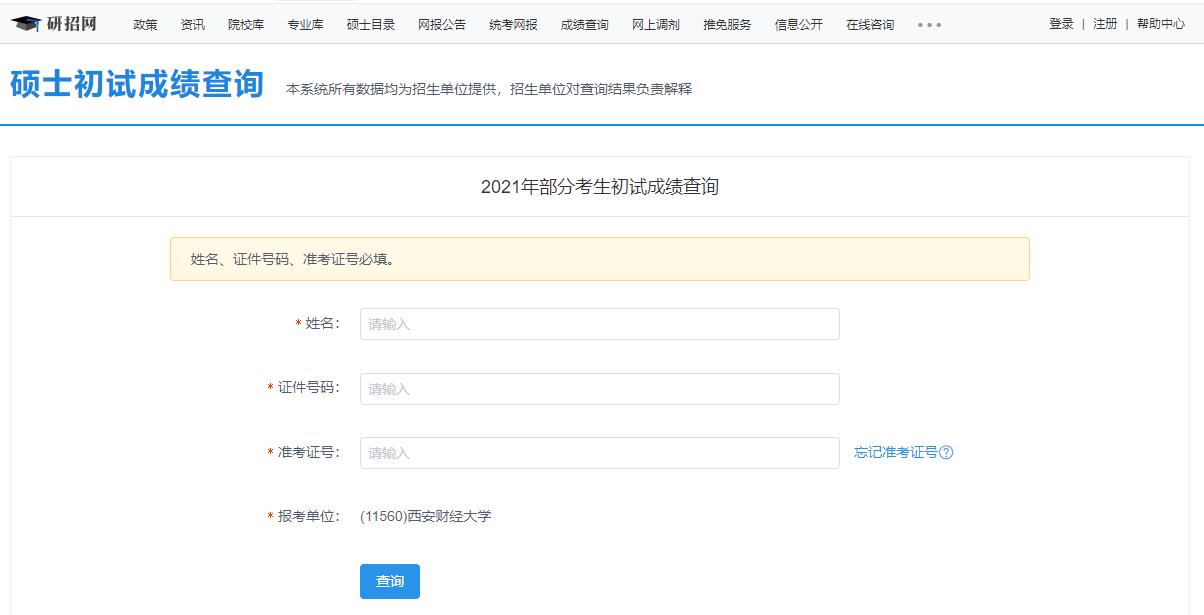 2021考研初試成績:西安財經(jīng)大學考研初試成績查詢?nèi)肟陂_啟!初試成績已公布!