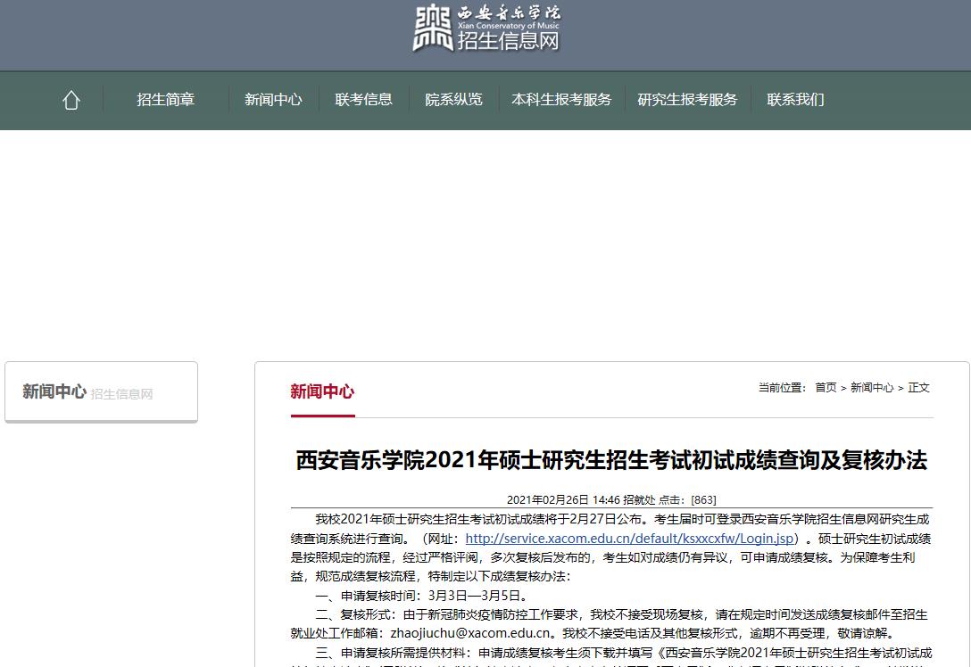 2021考研初試成績(jī):西安音樂(lè)學(xué)院考研初試成績(jī)查詢(xún)?nèi)肟陂_(kāi)啟!初試成績(jī)已公布!