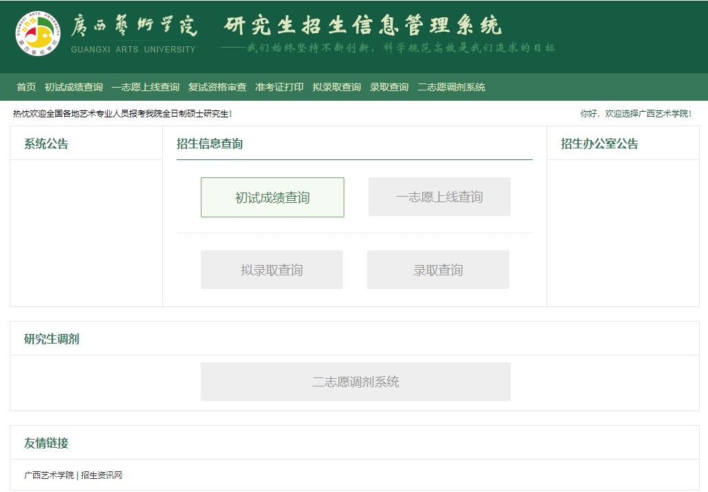 廣西藝術(shù)學(xué)院考研初試成績(jī)查詢(xún)?nèi)肟?/span>:http://yjs.gxau.edu.cn/enroll/Index.aspx