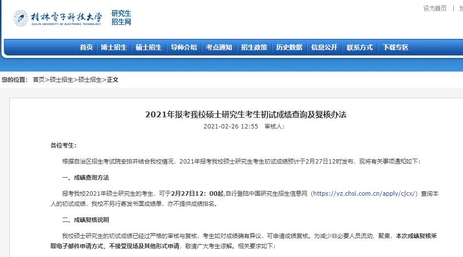 2021考研初試成績:桂林電子科技大學考研初試成績查詢入口開啟!初試成績已公布!