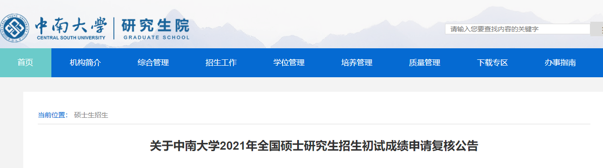 2021考研初試成績(jī):中南大學(xué)考研初試成績(jī)查詢(xún)?nèi)肟陂_(kāi)啟!初試成績(jī)已公布!