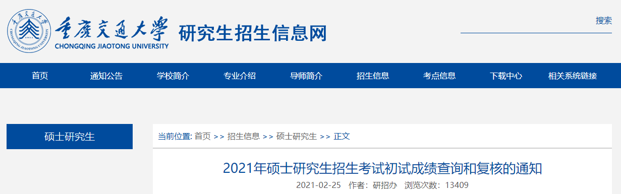 2021考研初試成績:重慶交通大學考研初試成績查詢?nèi)肟陂_啟!初試成績已公布!