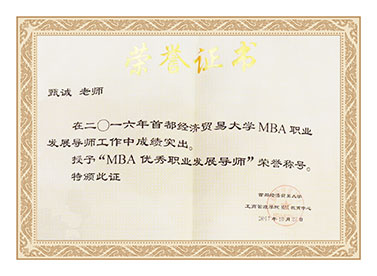 MBA優(yōu)秀職業(yè)發(fā)展導(dǎo)師榮譽稱號