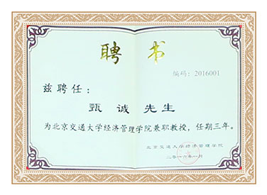 北京交通大學(xué)經(jīng)濟管理學(xué)院兼職教授
