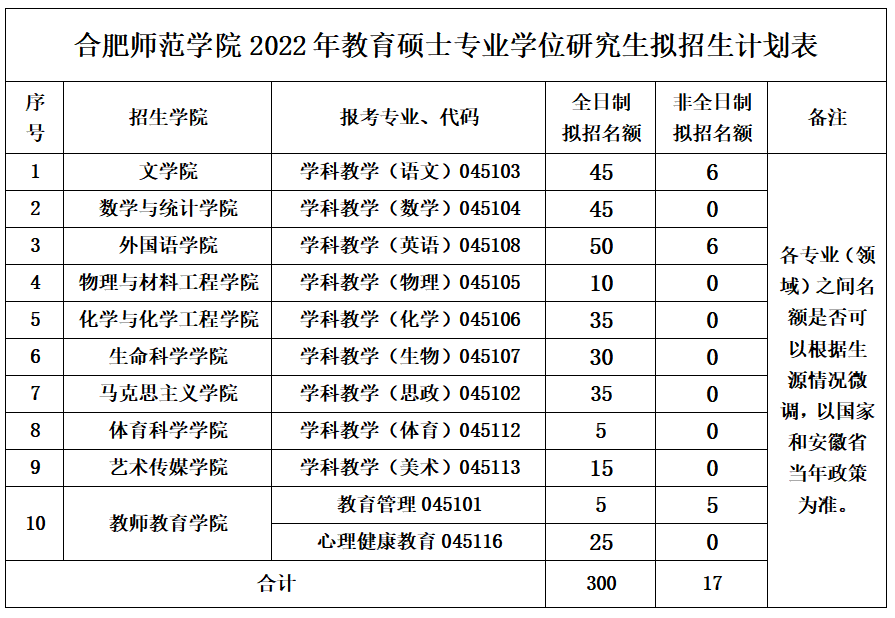 1.全日制招生領(lǐng)域11個(gè):學(xué)科教學(xué)(語文、數(shù)學(xué)、英語、物理、化學(xué)、生物、思政、美術(shù)、體育)、教育管理、心理健康教育。擬招生300人。