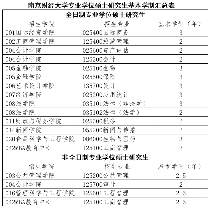 我校專業(yè)學(xué)位碩士研究生基本學(xué)制如下表: