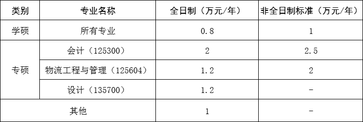 全日制研究生:學(xué)習(xí)方式為全脫產(chǎn),非全日制研究生:學(xué)習(xí)方式為全脫產(chǎn)或半脫產(chǎn)。收費(fèi)標(biāo)準(zhǔn)見(jiàn)下表: