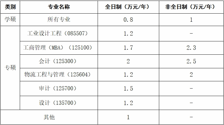 全日制研究生:學(xué)習(xí)方式為全脫產(chǎn),非全日制研究生:學(xué)習(xí)方式為全脫產(chǎn)或半脫產(chǎn);所有專(zhuān)業(yè)學(xué)制3年。收費(fèi)標(biāo)準(zhǔn)見(jiàn)下表: