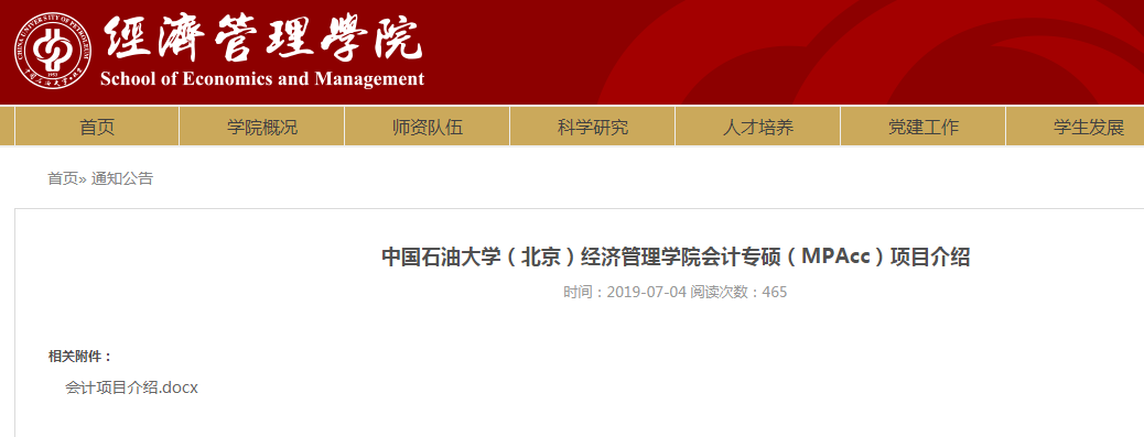 中國石油大學(xué)(北京)經(jīng)濟管理學(xué)院會計專碩(MPAcc)項目介紹(招生簡章)