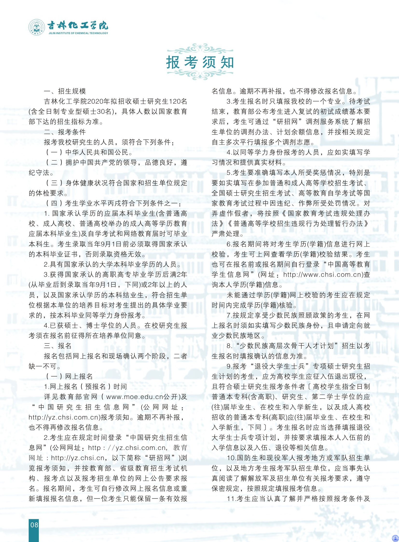 當(dāng)前位置: 招生簡(jiǎn)章 > 吉林化工學(xué)院2020年全日制碩士研究生招生簡(jiǎn)章