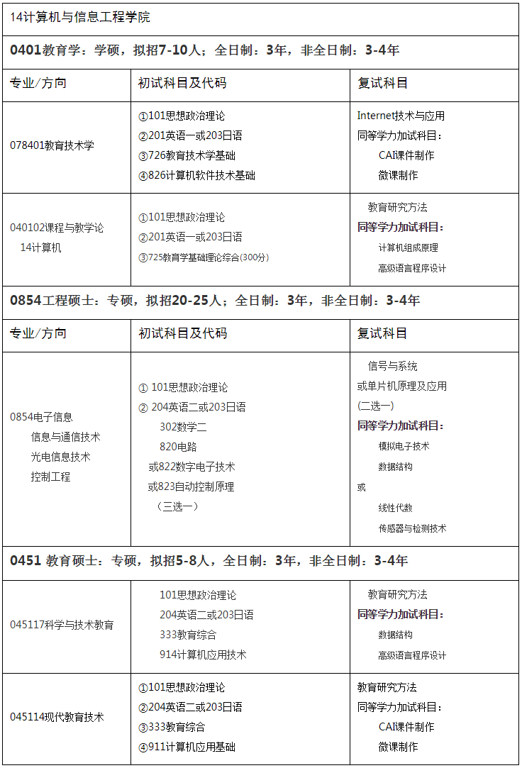 以上就是“湖北師范大學(xué)2020年計(jì)信院碩士研究生招生簡(jiǎn)章”的全部?jī)?nèi)容!更多2020年招生簡(jiǎn)章信息,盡在“招生簡(jiǎn)章”欄目!