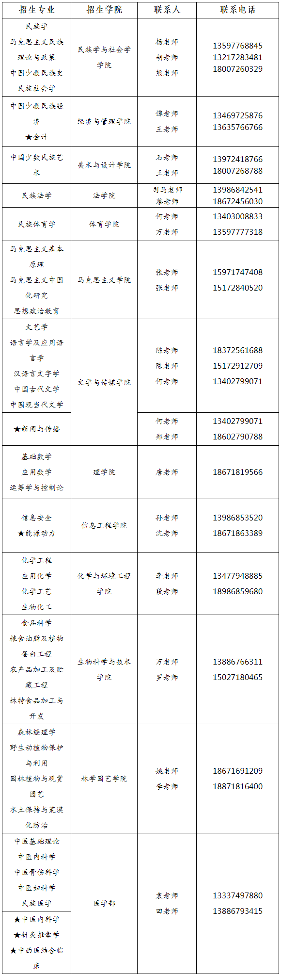 各學(xué)院招生聯(lián)系人及聯(lián)系電話見(jiàn)下表: