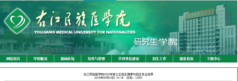 右江民族醫(yī)學(xué)院2020年碩士生招生簡章與招生專業(yè)目錄