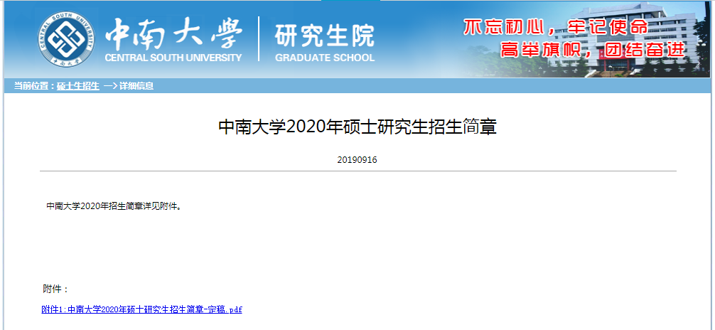 當(dāng)前位置: 招生簡章 > 中南大學(xué)2020年碩士研究生招生簡章