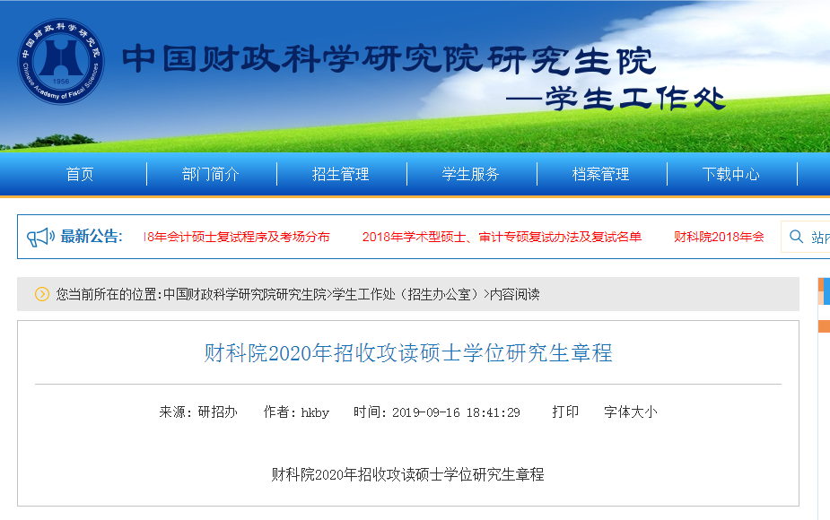 以上就是“中國財政科學(xué)研究院2020年招收攻讀碩士學(xué)位研究生章程”的全部內(nèi)容!祝您考研成功!