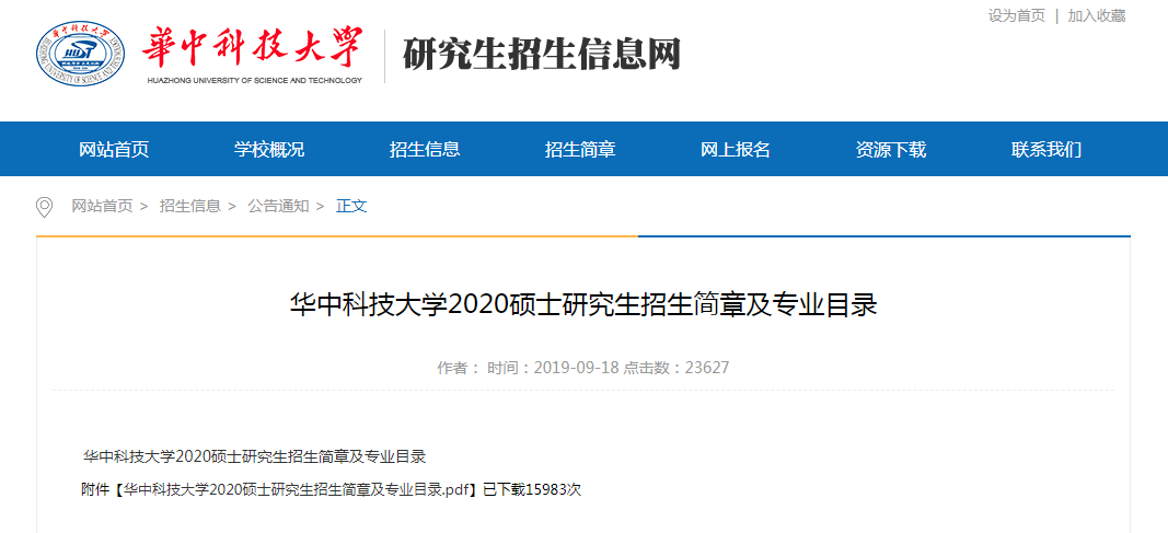 華中科技大學(xué)2020碩士研究生招生簡(jiǎn)章及專業(yè)目錄