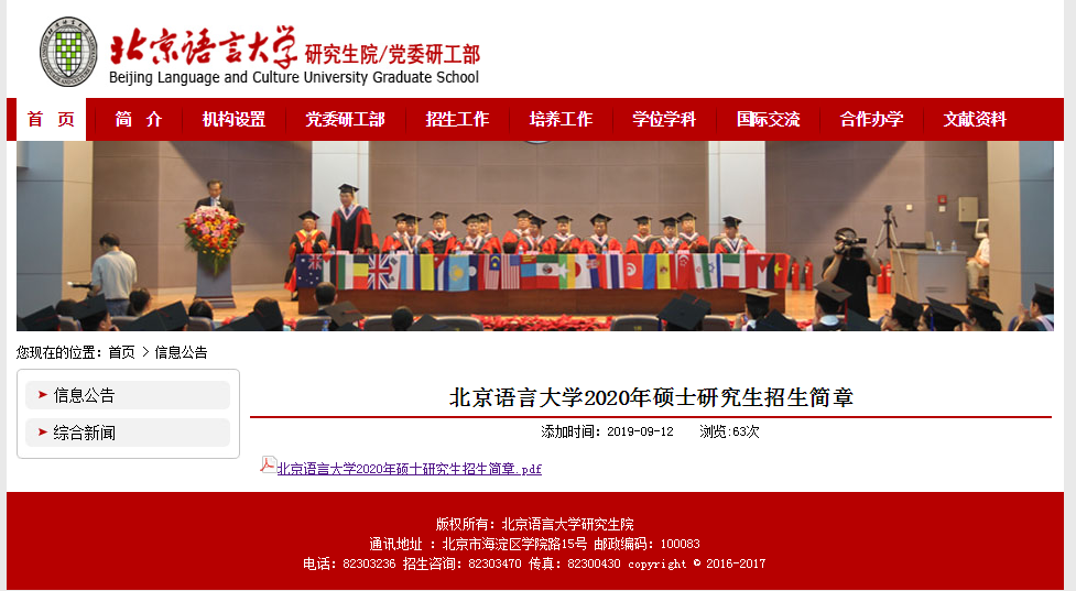 當(dāng)前位置: 招生簡(jiǎn)章 > 北京語言大學(xué)2020年碩士研究生招生簡(jiǎn)章