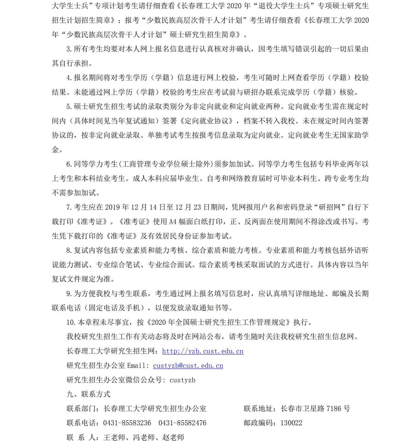 以上就是“長春理工大學2020年碩士研究生招生章程”的全部內(nèi)容!祝您考研成功!