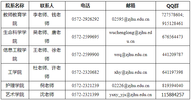 湖州師范學(xué)院研究生處,浙江省湖州市二環(huán)東路759號(hào)明達(dá)樓317室,郵編:313000,電話:0572-2322779。Email:yjsc@zjhu.edu.cn。官方網(wǎng)站:http://yjsc.zjhu.edu.cn/。