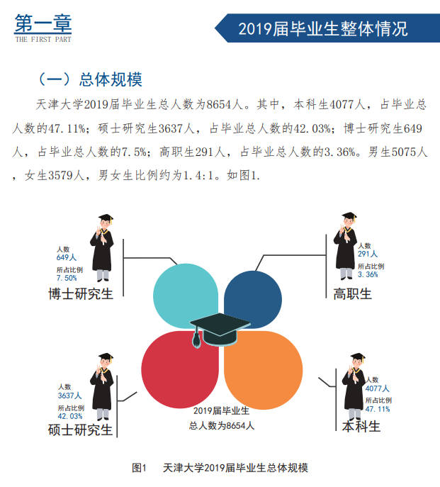 天津大學(xué)發(fā)布的《2019屆畢業(yè)生就業(yè)質(zhì)量報告》包括:畢業(yè)生基本情況、畢業(yè)生就業(yè)情況就業(yè)特點、畢業(yè)生求職情況及反饋評價、用人單位人才需求反饋等內(nèi)容。