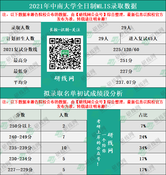 今天為大家?guī)淼氖悄暇┐髮W(xué)、中南大學(xué)MLIS錄取數(shù)據(jù)分析,希望大家合理擇校,考研順利。