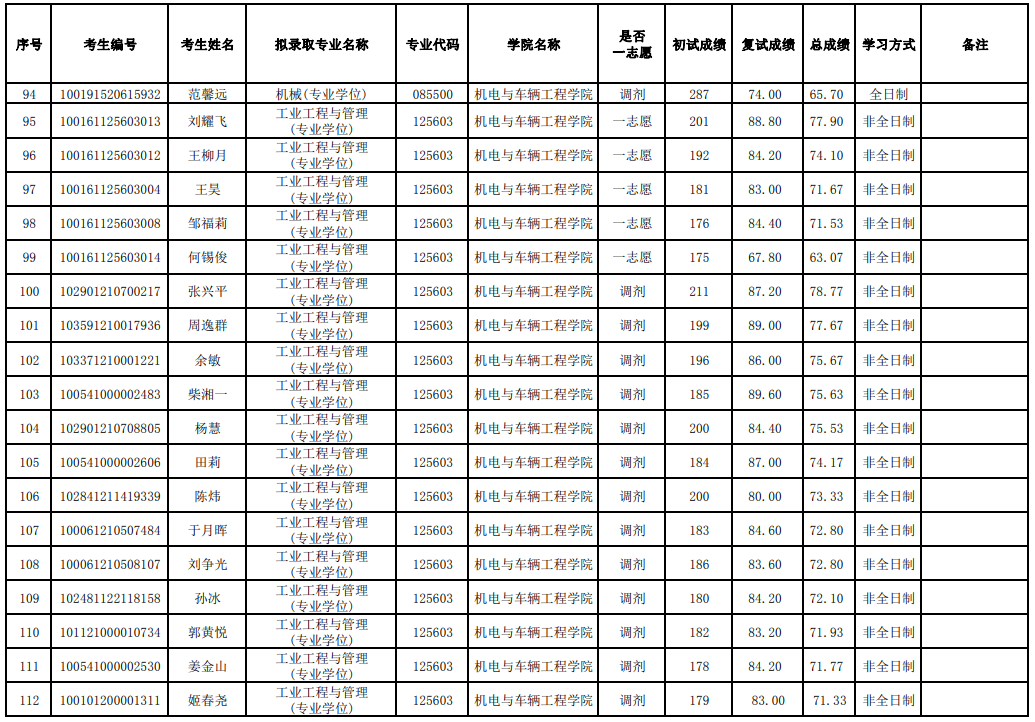 非全日制錄取平均分:185分。