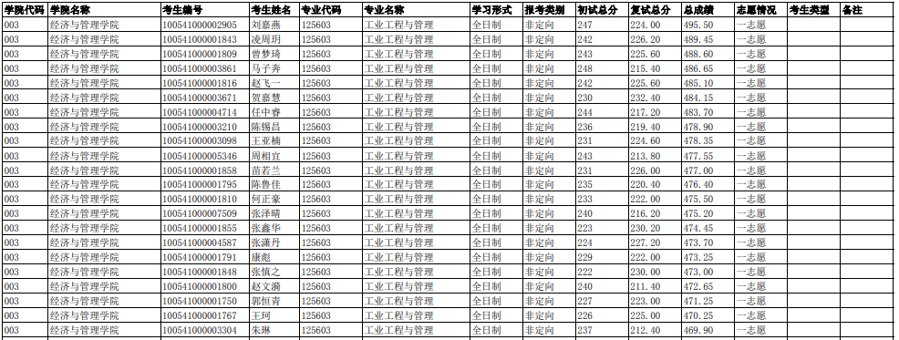 非全日制錄取最高分:237分,