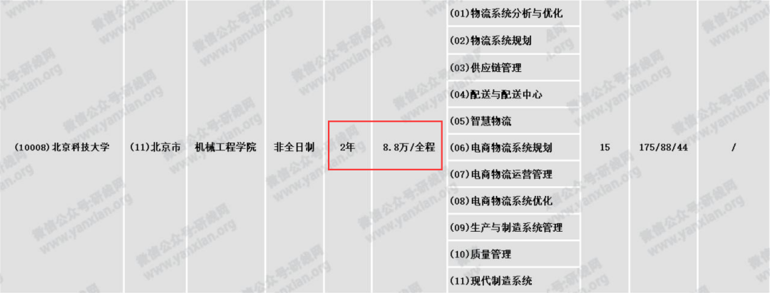 北京科技大學(xué)物流工程與管理專業(yè)學(xué)費(fèi)為8.8萬元/全程。