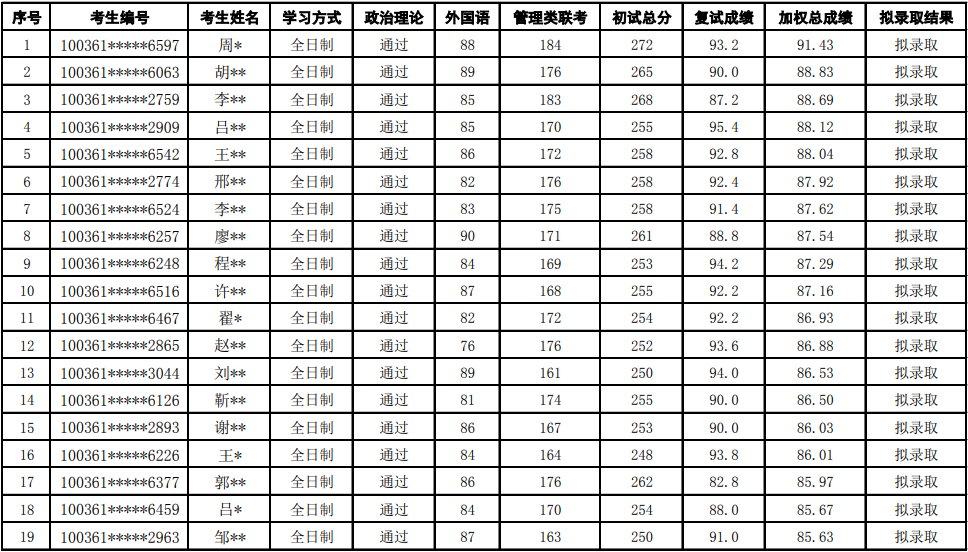 非全日制擬錄取人數(shù)為2人,其中錄取最高分為258分,錄取最低分為245分,錄取平均分為251.5分。