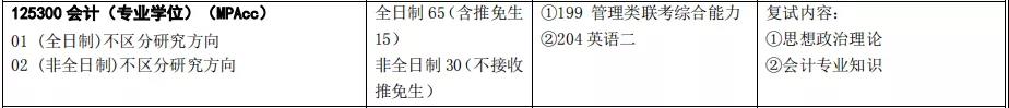 2021年MPAcc計(jì)劃招生全日制65人,其中含推免人數(shù)為15人;非全日制30人(不接收