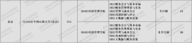 會計(jì)專碩全日制計(jì)劃招生15人,非全日制計(jì)劃招生30人