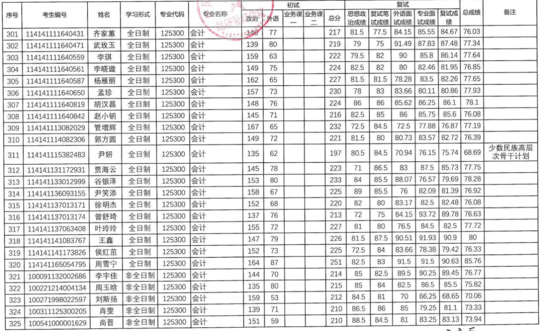 非全日制錄取最高分:223分