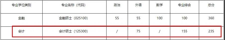 會(huì)計(jì)專碩復(fù)試分?jǐn)?shù)線為235/155/75