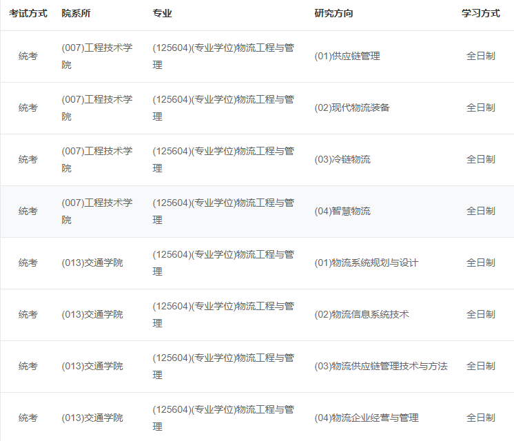 2021年交通學(xué)院物流工程與管理專業(yè)計劃招生全日制9人以上人數(shù)不含