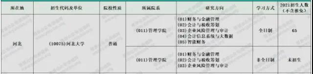 河北大學(xué)2021年全日制會(huì)計(jì)專碩計(jì)劃招生65人(不含推免),非全日制未招生