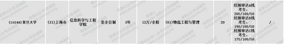 復旦大學物流工程與管理專業(yè)(2020年)學制3年,學費為12萬/全程。