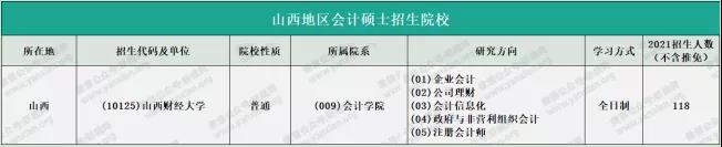 山西財經(jīng)大學(xué)2021年會計專碩全日制計劃招生118人(不含推免)