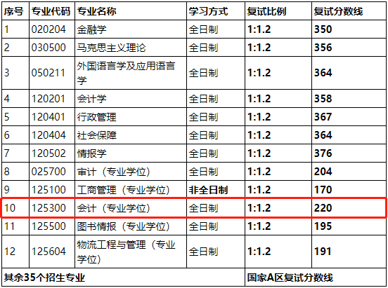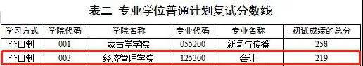 會計專碩復(fù)試分?jǐn)?shù)線為: