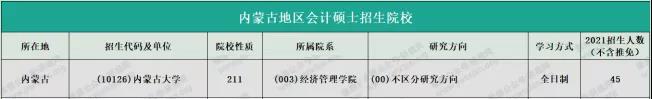 內(nèi)蒙古大學(xué)2021年全日制會計專碩計劃招生45人(不含推免)