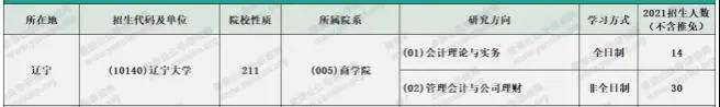 遼寧大學(xué)2021年全日制會(huì)計(jì)專碩計(jì)劃招生14人,計(jì)劃招生