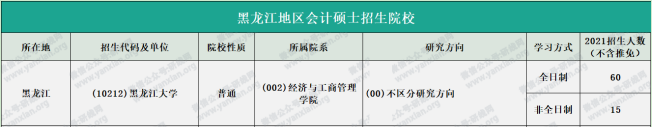 黑龍江大學2021年全日制會計專碩計劃招生60人(不含推免)非全日制會計專碩計劃招生15人