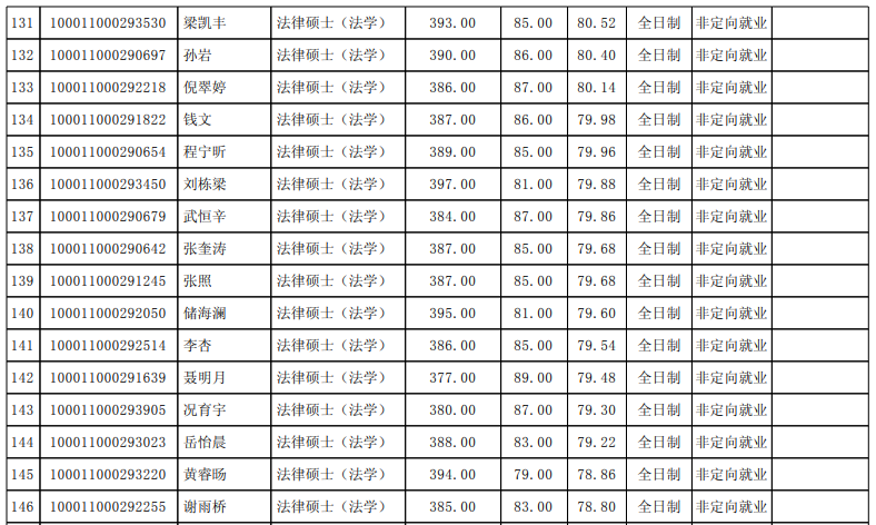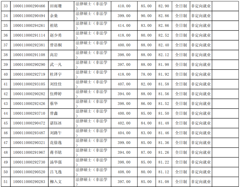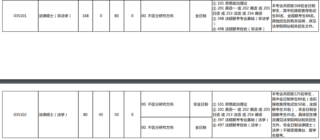 法碩(法學(xué)):全日制錄取50人。非全日制法律碩士(法學(xué))33名。