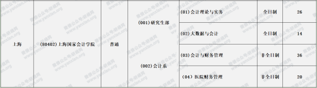 上海國(guó)家會(huì)計(jì)學(xué)院2021年研究生部會(huì)計(jì)專碩全日制計(jì)劃招生40人(會(huì)計(jì)理論與實(shí)務(wù)、大數(shù)據(jù)與會(huì)計(jì))會(huì)計(jì)系非全日制計(jì)劃招生56人(會(huì)計(jì)與財(cái)務(wù)管理、醫(yī)院財(cái)務(wù)管理)