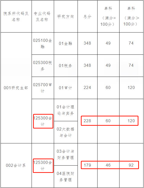 上海國(guó)家會(huì)計(jì)學(xué)院2021年研究生部會(huì)計(jì)專碩復(fù)試分?jǐn)?shù)線為:228/120/60